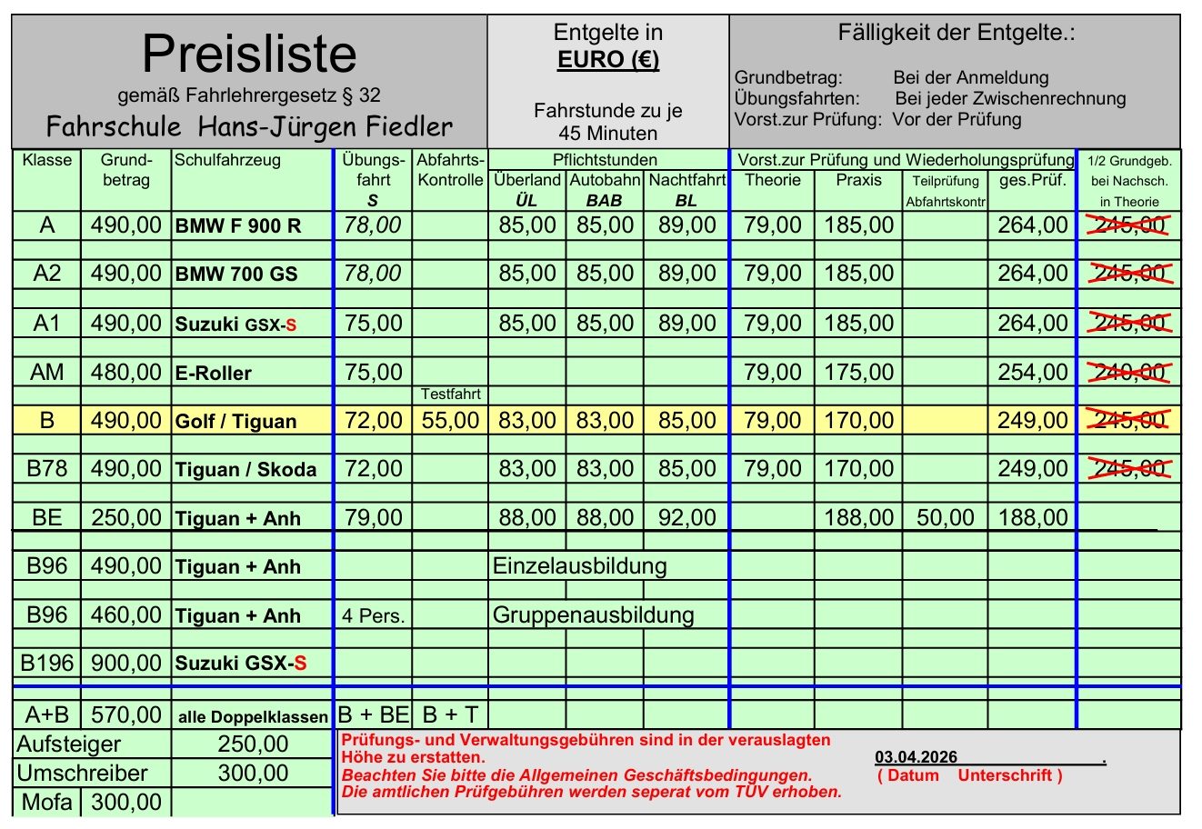 Preisliste